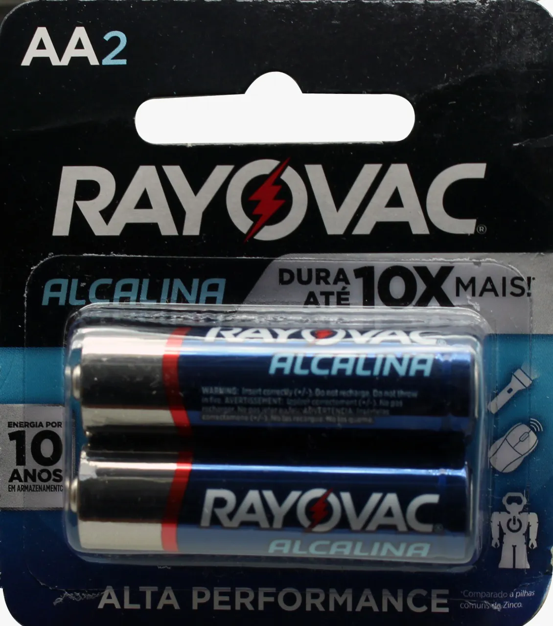 Pilha Alcalina Rayovac AA (pequena) - 1 x Cartela com 2 Pilhas
