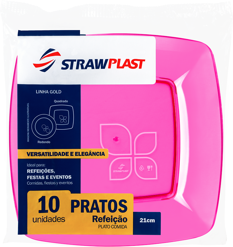 Prato Descartável Strawplast Quadrado 21cm com 10 Unidades Rosa