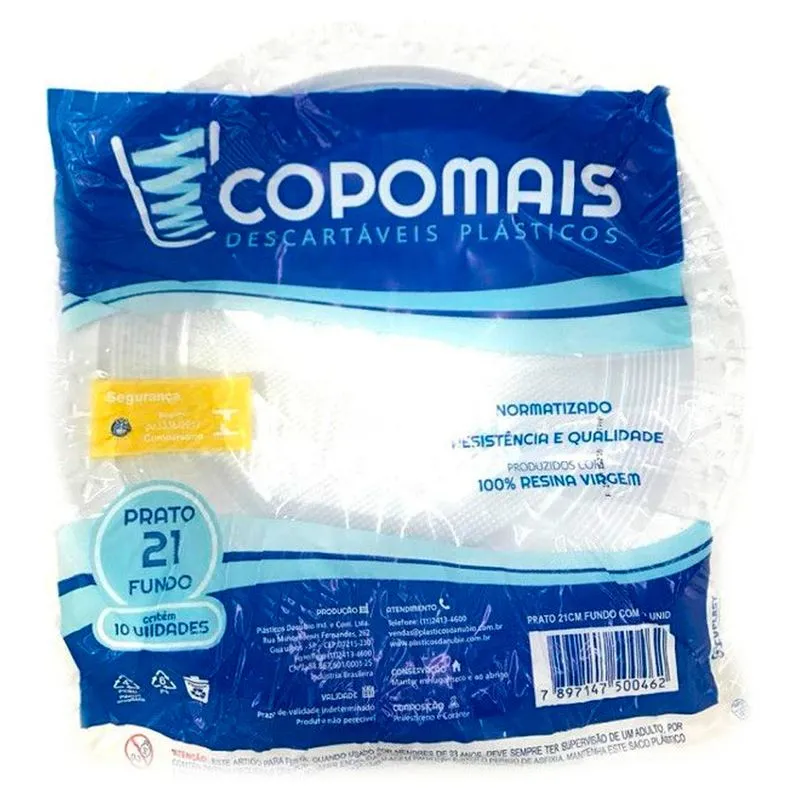 Prato Fundo 21 cm Branco para Refeição Copomais com 10 unidades.