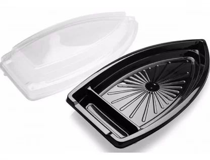 Embalagem plástica no formato de barco, linha oriental Galvanotek foi desenvolvida especialmente para servir os pratos japoneses (sushi, sashimi, niguiri, etc).