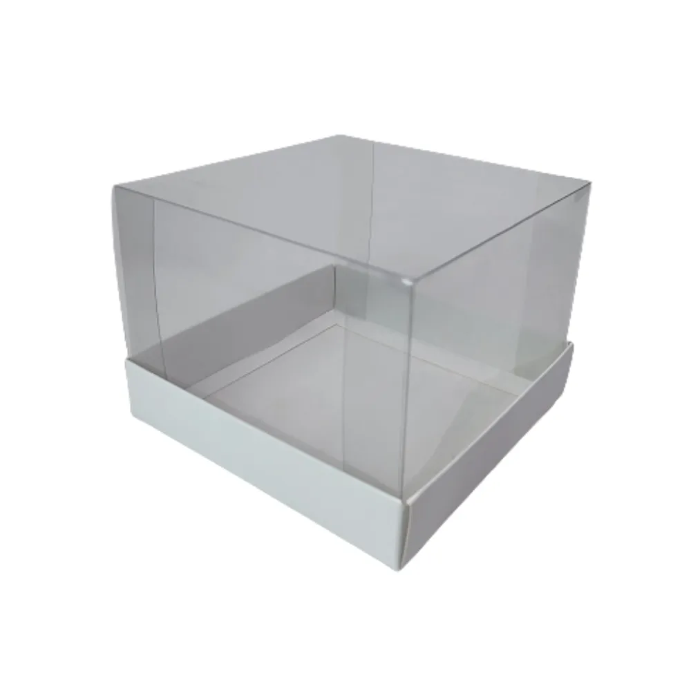 Caixa com fundo de papel e tampa em acetato