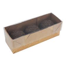 Caixa 3 Doces com Tampa Transparente (4cm x 12cm x 4cm) Kraft 10 unidades