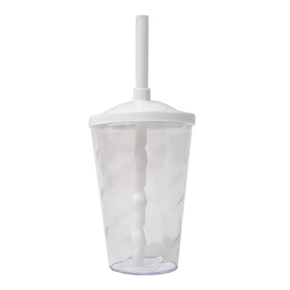 Copo com tampa e canudo - 400 ml Acrílico - Transparente Tampa e Canudo na cor Branca