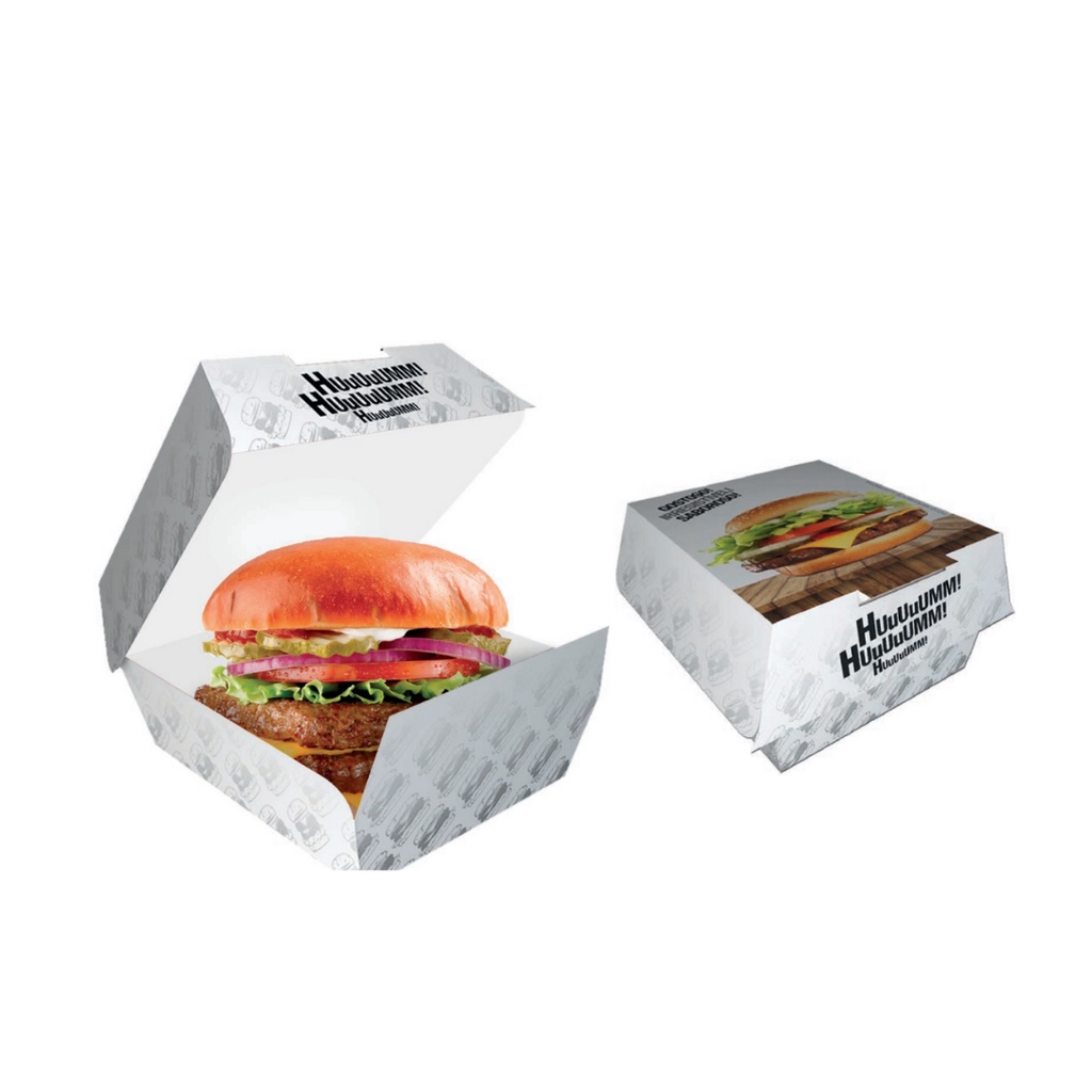 Diferente das embalagens de outras empresas a nossa embalagem para hambúrguer já vai colada, ocupando pouquíssimo espaço e agilizando muito a produção. A embalagem de hambúrguer foi pensada em atender especificamente o delivery, mas também pode ser utilizada para servir os lanches na bandeja. A embalagem de hambúrguer é produzida com papel certificado ISEGA que permite contato direto com o alimento.