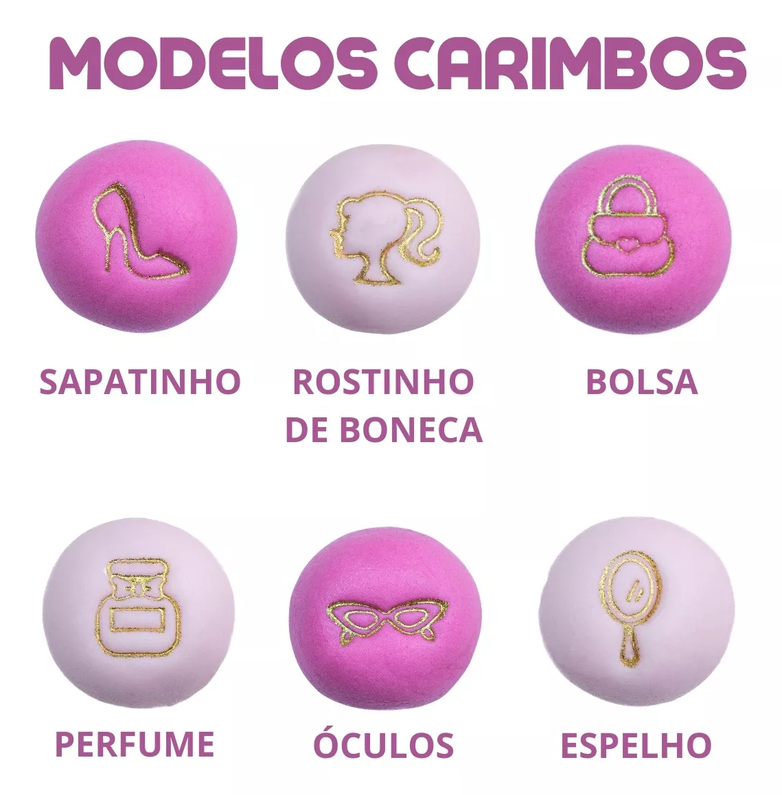 O Kit é composto por 06 modelos de carimbos e 01 cabo base para encaixar.