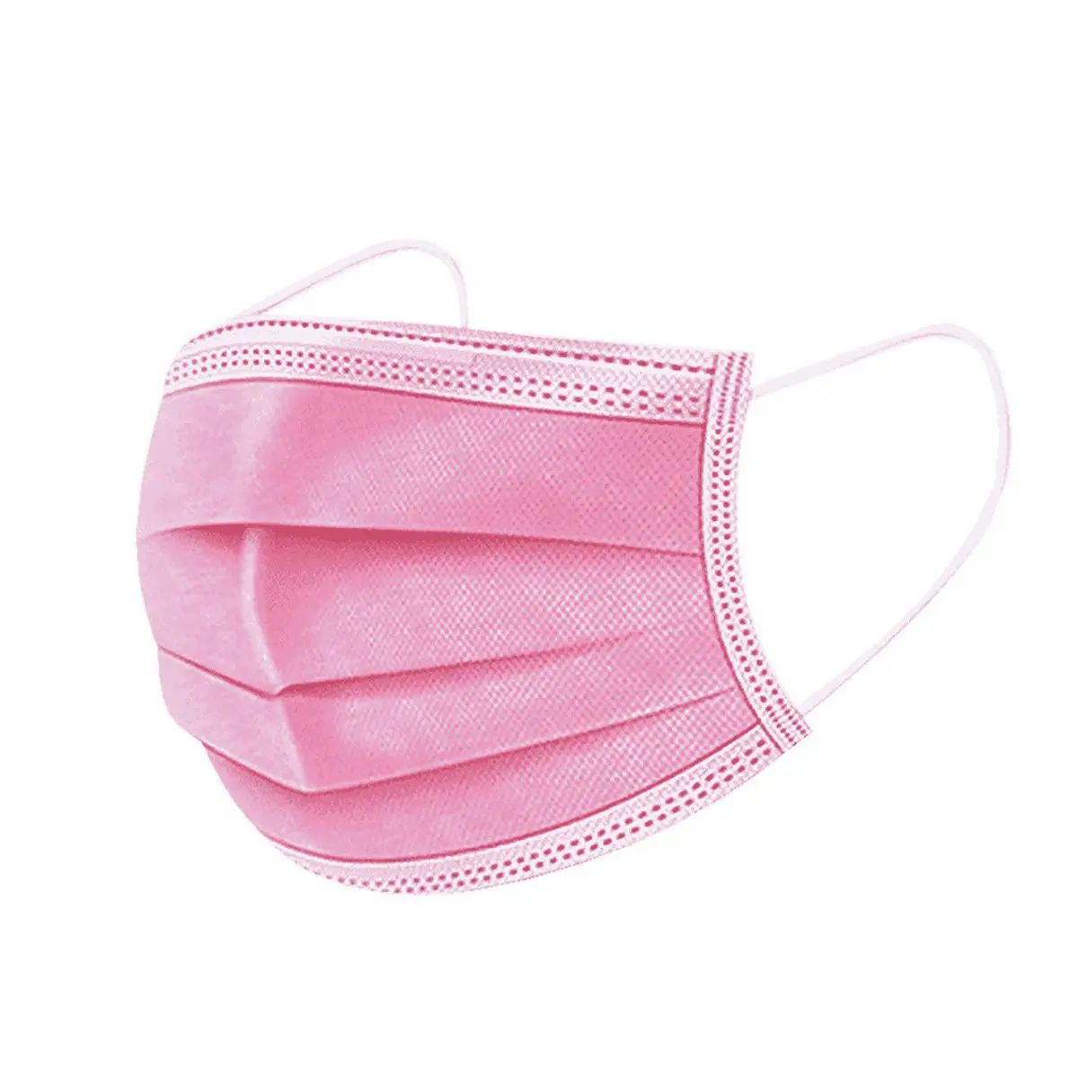 MÁSCARA DESCARTÁVEL DE PROTEÇÃO FACIAL TRIPLA NA COR ROSA CAMADA CAIXA C/ 50 PÇS