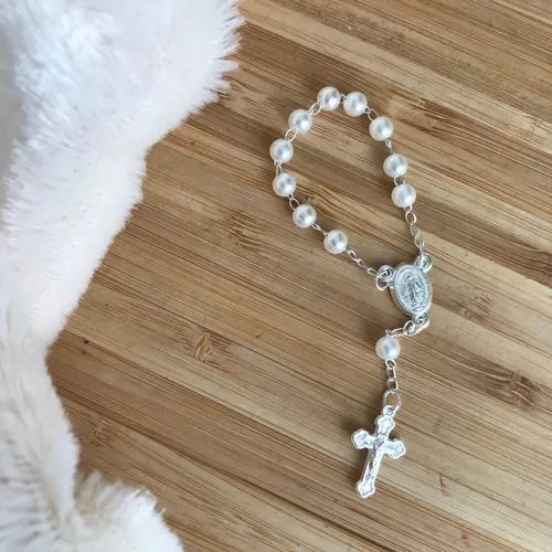 6 Mini Terços Para Lembrancinhas | Cor: Branca