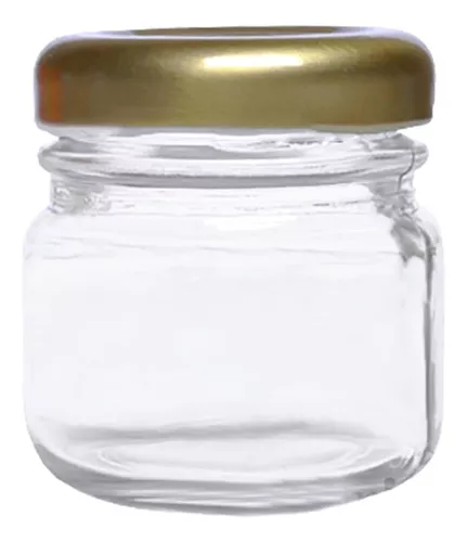 Pacote com 5 unidades de potes e 5 unidades tampa 38mm de plástico na cor dourada