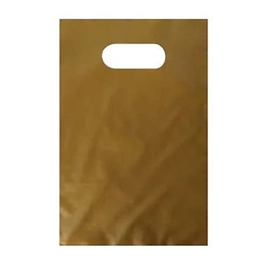 100 Sacola Plástica Boca De Palhaço Alça vazada Cor Ouro 15x20