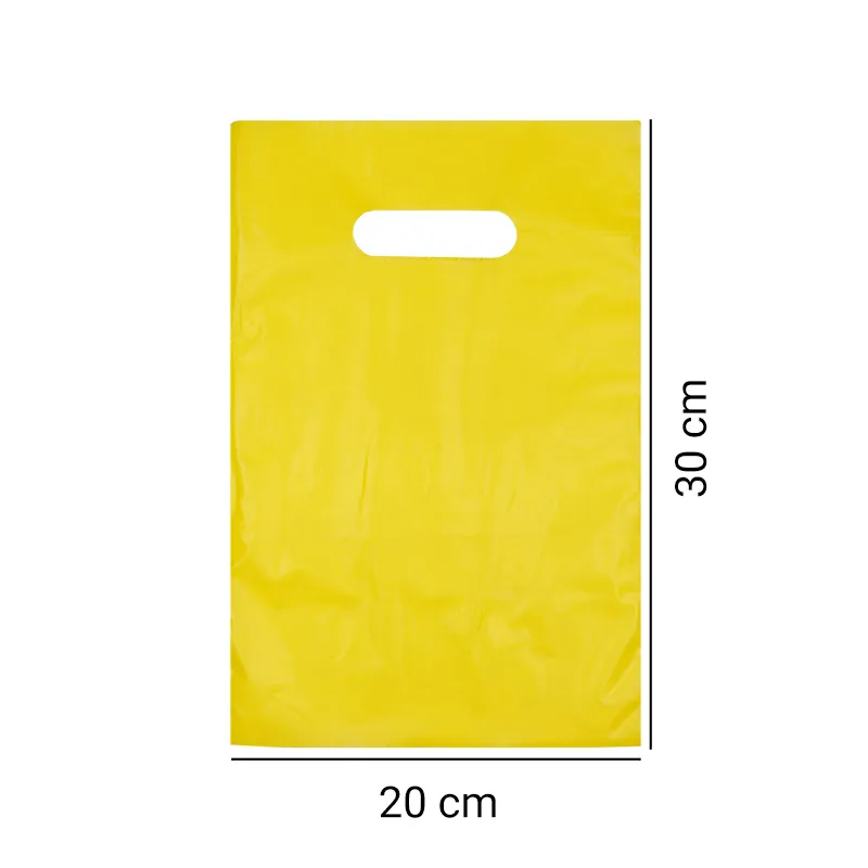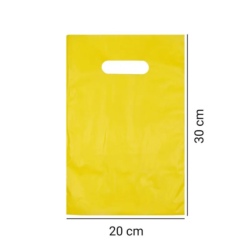 100 Sacola Plástica Boca De Palhaço Alça vazada Cor Amarela 20x30