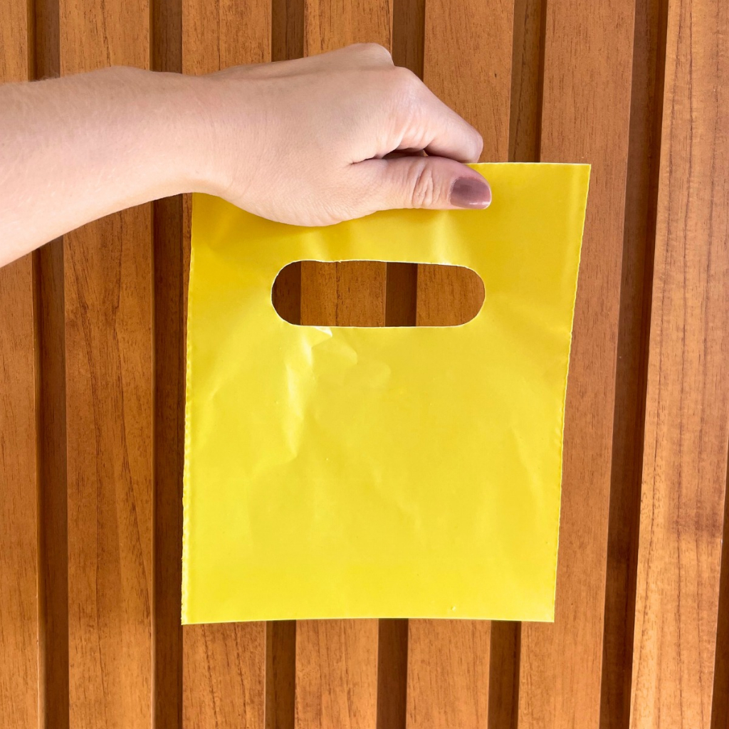 50 Sacola Plástica Boca De Palhaço Alça vazada Cor Amarela 15x20