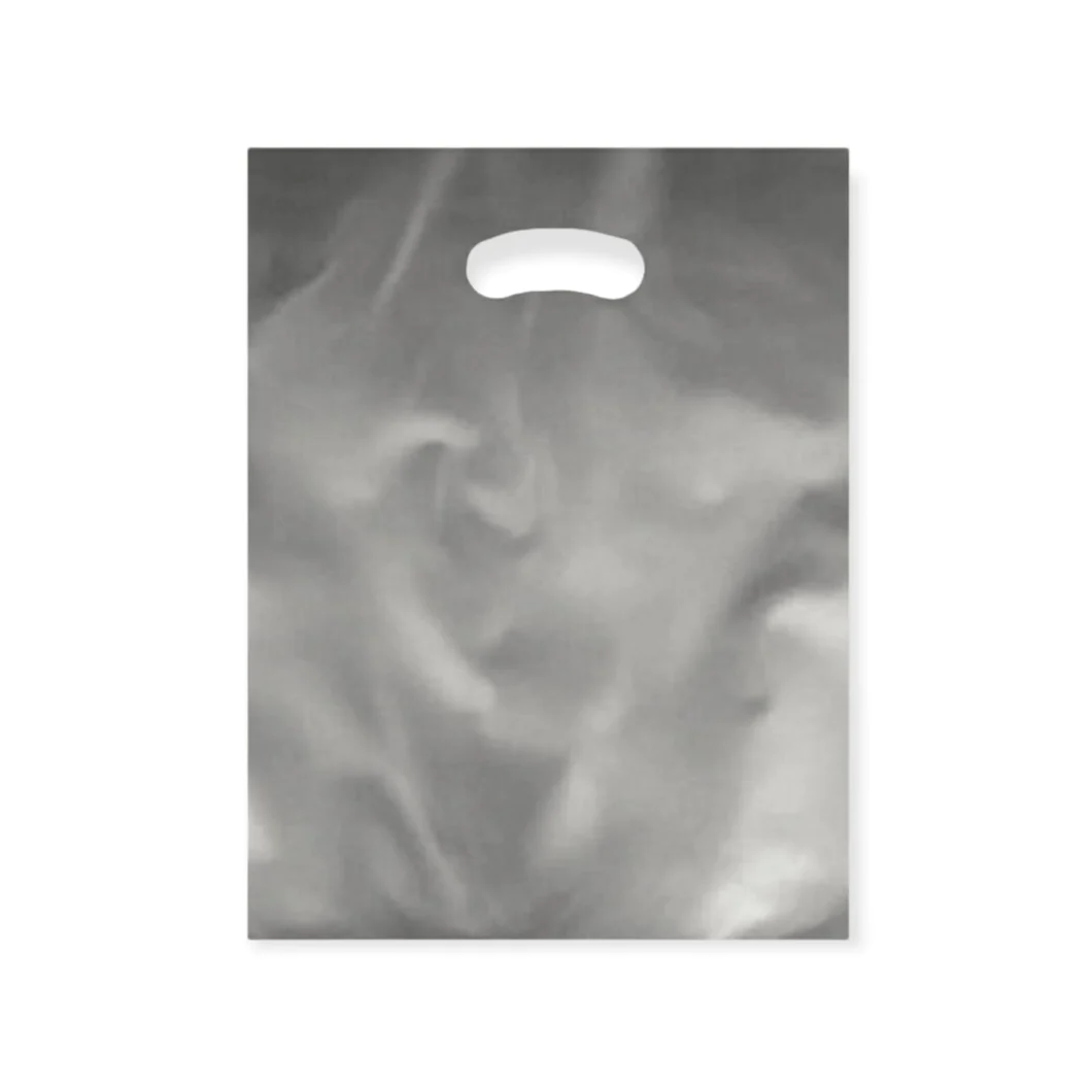 50 Sacola Plástica Boca De Palhaço Alça vazada Cor Prata 20X30