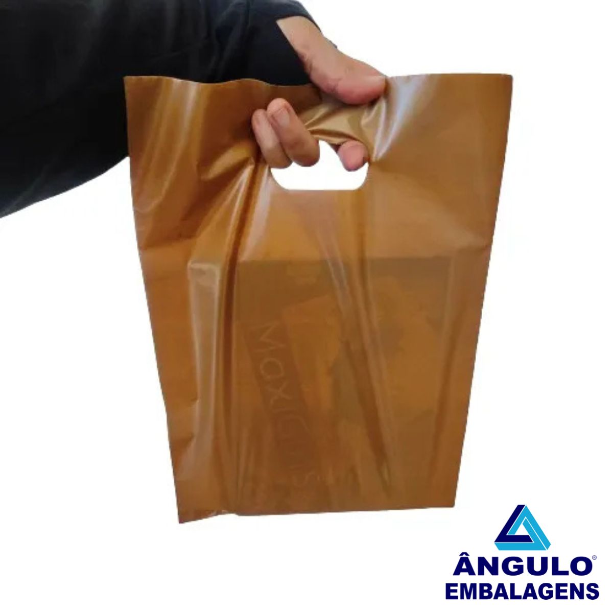 50 Sacola Plástica Boca De Palhaço Alça vazada Cor Dourada 30X40