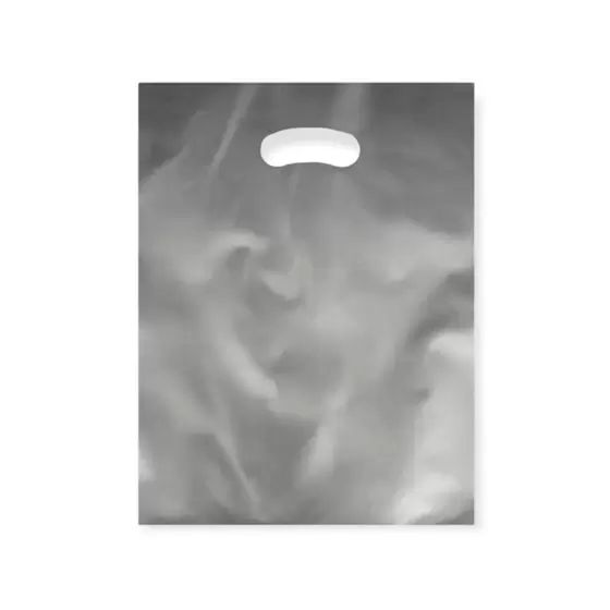 50 Sacola Plástica Boca De Palhaço Alça vazada Cor Prata 30X40