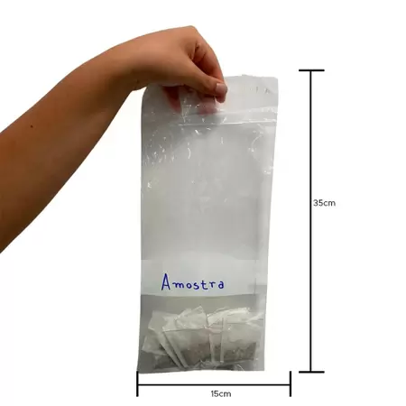 Abrir a embalagem ou o saco sem tocá-lo internamente nem soprá-lo;