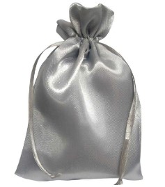 Saco de Cetim 10x12cm na cor Prata - Pacote com 10 Unidades