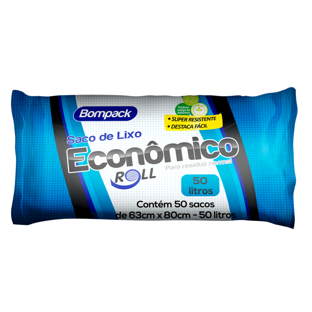 SACO DE LIXO BOMPACK ECONOMICO PRETO 50 LITROS C/50 63x80cm