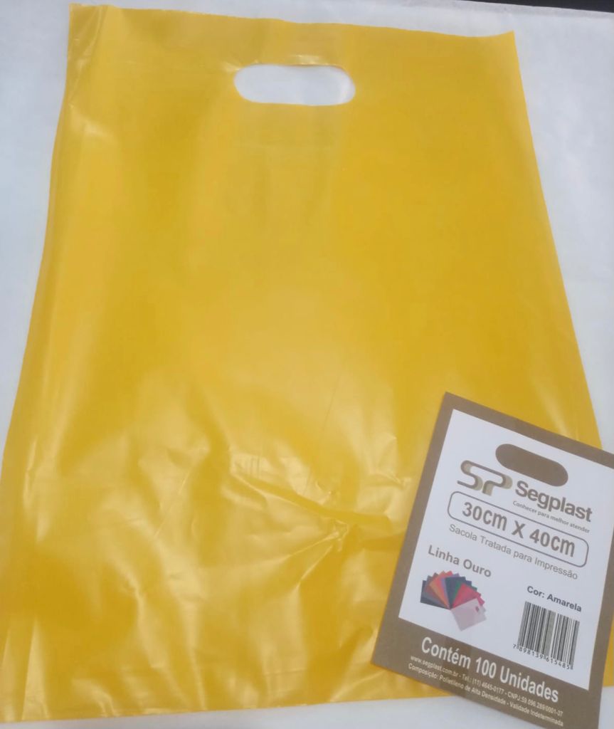SACOLA 30X40 AMARELA ALÇA VAZADA C/100 UND