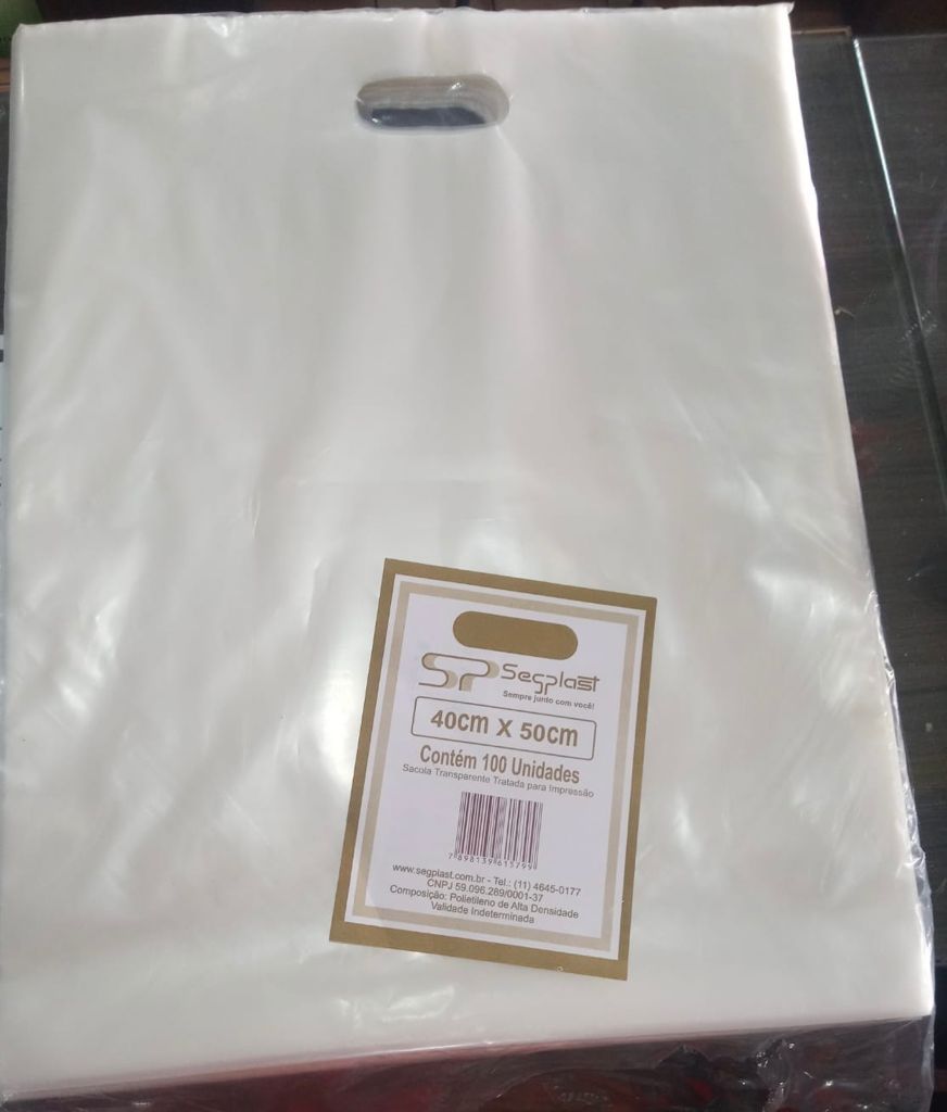 100 Sacola Plástica Alça Vazada tamanho 40x50