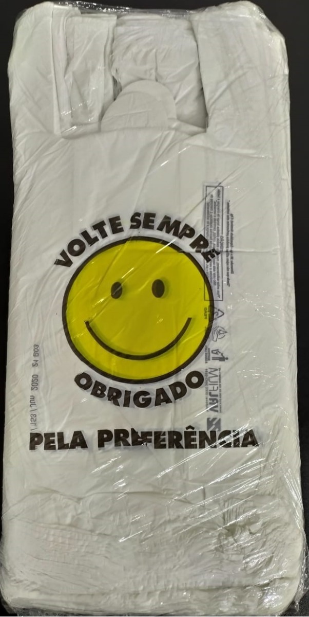 Sacola Plástica Reprocessada Volte Sempre com Carinha Amarela 40x50