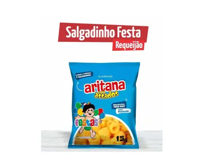 O Salgadinho Aritana Festa de 15grs é conhecido pelo sabor e pela vontade de comer mais, pois depois de anos no mercado tem uma alta qualidade na produção. Ótima para usar em lembrancinhas nas comemorações e para mandar como mimo para clientes. Marca: Aritana. Sabor: Salgadinho Bacon ou Queijoo e Requeijão Peso: 15g.