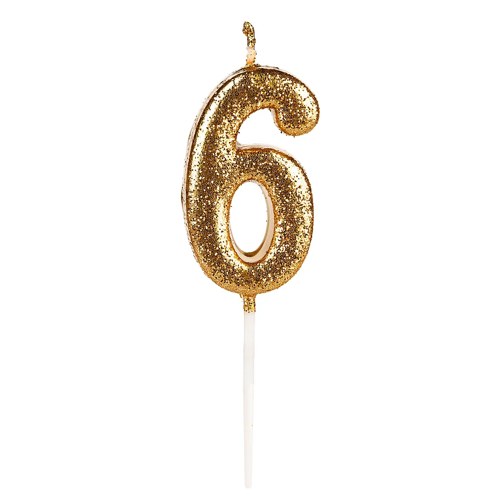 Dê um toque de brilho e sofisticação à sua comemoração com esta linda vela dourada com glitter, no formato do número 6! Ideal para aniversários, aniversários de casamento, festas temáticas ou qualquer data especial.