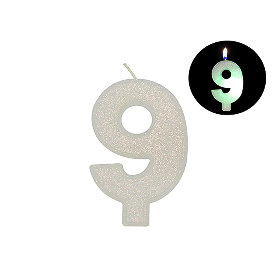 As velas da Silver Plastic da coleção Led, são perfeitas para você que gosta de celebrar com estilo, elegância e iluminação em dobro. Essa vela numérica, número 9 (nove), é feita na cor branca, com gliter e com uma luz de led por dentro. Além de ser muito bonita e diferente, trará um toque especial aos seus bolos e tortas. Com aproximadamente 10cm de comprimento por 6cm de largura, essa vela é um produto feito em parafina, fio de algodão, pigmentos atóxicos, lâmpada led, bateria e componente eletrônico, contendo uma unidade em cada embalagem.