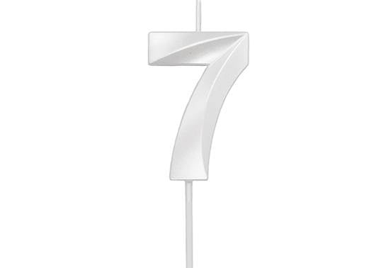Ilumine seu momento especial com a Vela Mini Design Branca Perolizada Número 7 da marca Silver Plastic.